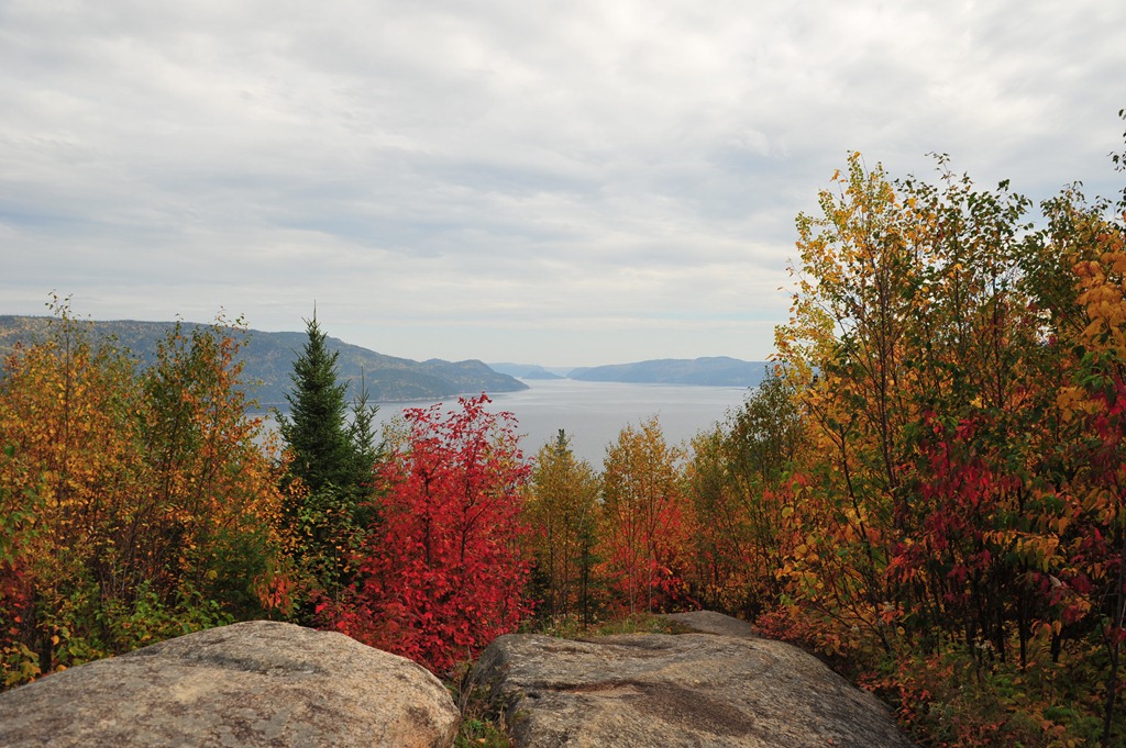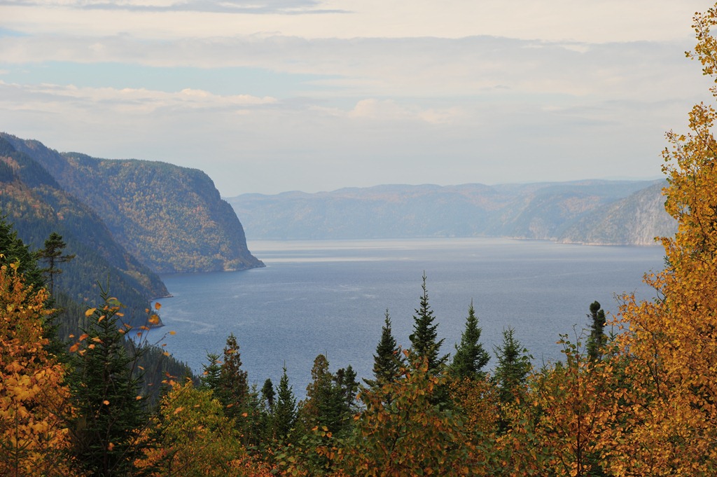 Au bout d’une route, une magnifique vue sur la rivière qui se jette dans le fjord du Saguenay.