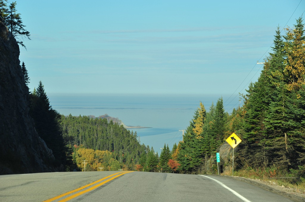 Nous poursuivons en remontant jusqu’à la Baie St Catherine. Là encore, de beaux paysages de lacs et des forêts multicolores sous un ciel bleu nous attendent.