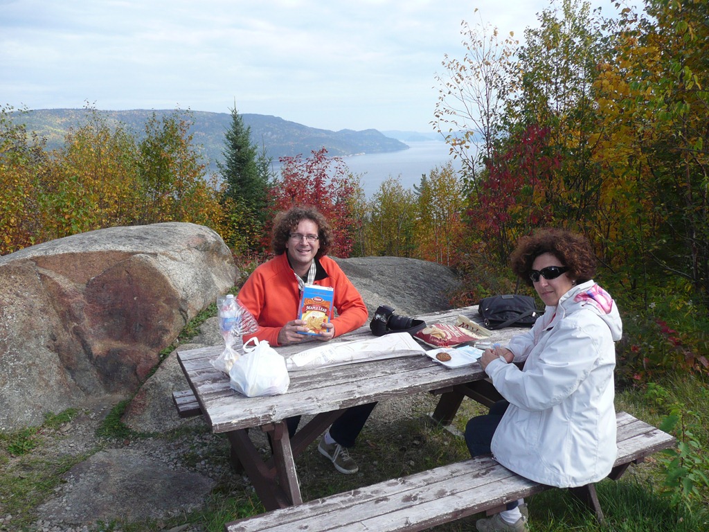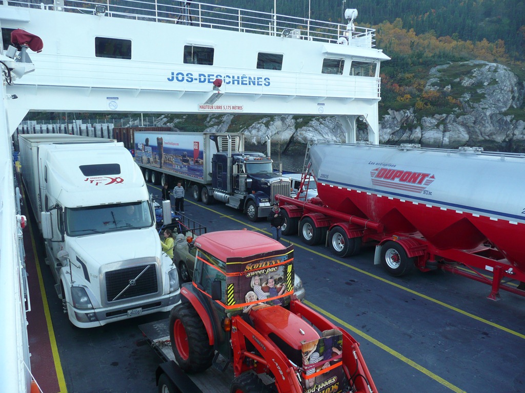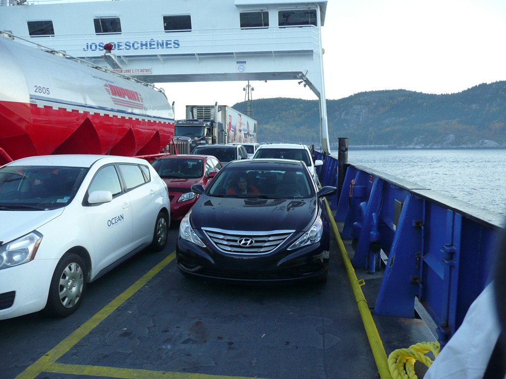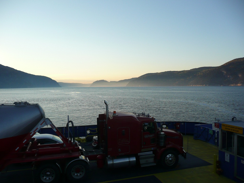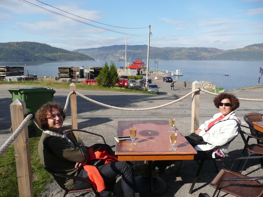 Nous allons manger à Tadoussac, ville située de l’autre coté du fjord, pour cela nous empruntons le Traversier (bac). La traversée dure environ 10 minutes, juste le temps de sortir de la voiture et de prendre un peu de fraicheur. Nous n’apercevrons pas de Beluga (baleines blanches, peut-être aurons nous plus de chance demain ? Car nous avons prévu une excursion pour voir les baleines…).