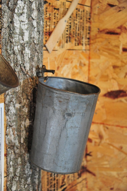 La propriétaire nous expliquera qu’un trou est fait dans le tronc de l’érable pour y planter une sorte de petit bec et accrocher un seau dessous.