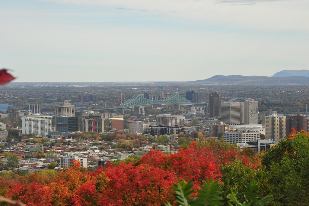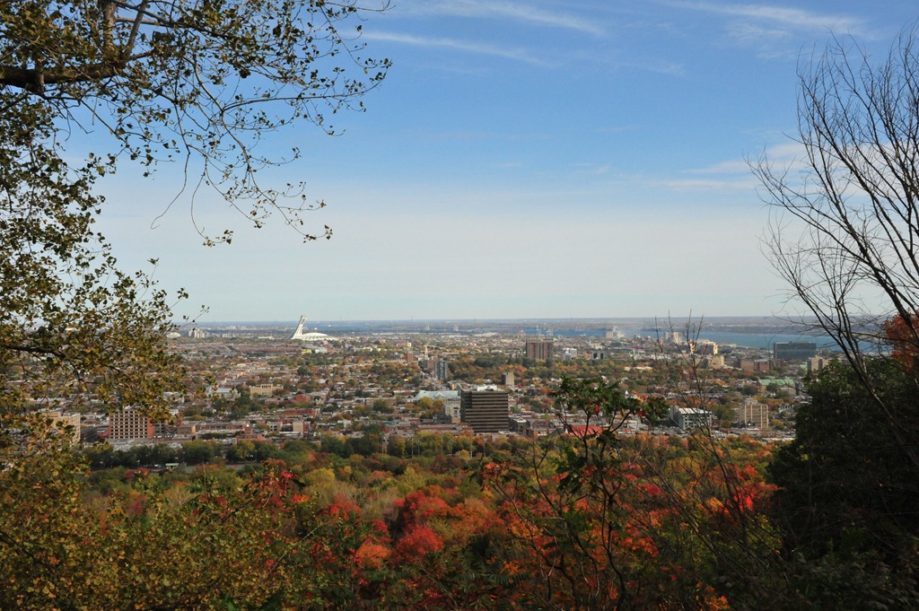 Après un peu d’exercice, il faut bien éliminer le sirop d’érable !!! nous arrivons au sommet. Une magnifique vue sur Montréal, le St Laurent…
