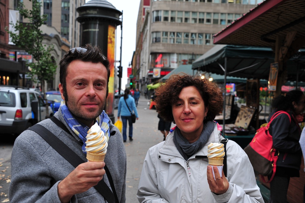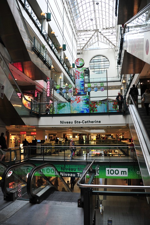 Apres ce bon petit tour, nous décidons de commencer notre aventure la ville souterraine. Pour cela nous prenons le métro pour faire deux stations et retourner vers le vieux Montréal. Nous entrons dans ce dédale de galerie qui fait au total 33Km. Il est facile de ce perdre. Avec ces réseaux souterrains, nous pouvons passer de building en building, de centre commercial en centre commercial sans mettre le nez dehors (cette ville souterraine a été créée pour protéger du froid car au Canada les hivers sont très froids). Bon nous sortons juste le nez dehors pour voir le temps, et de belles glaces au sirop d’érable nous tendent les bras !!! hummmm !!!!!