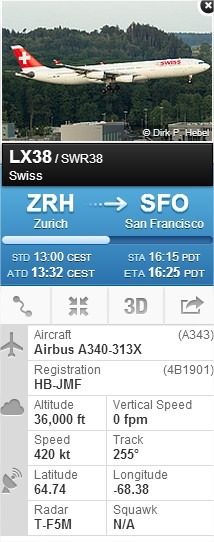 Et voila vous pouvez suivre le vol en cliquant ici : http://www.flightradar24.com/SWR38/402a886
