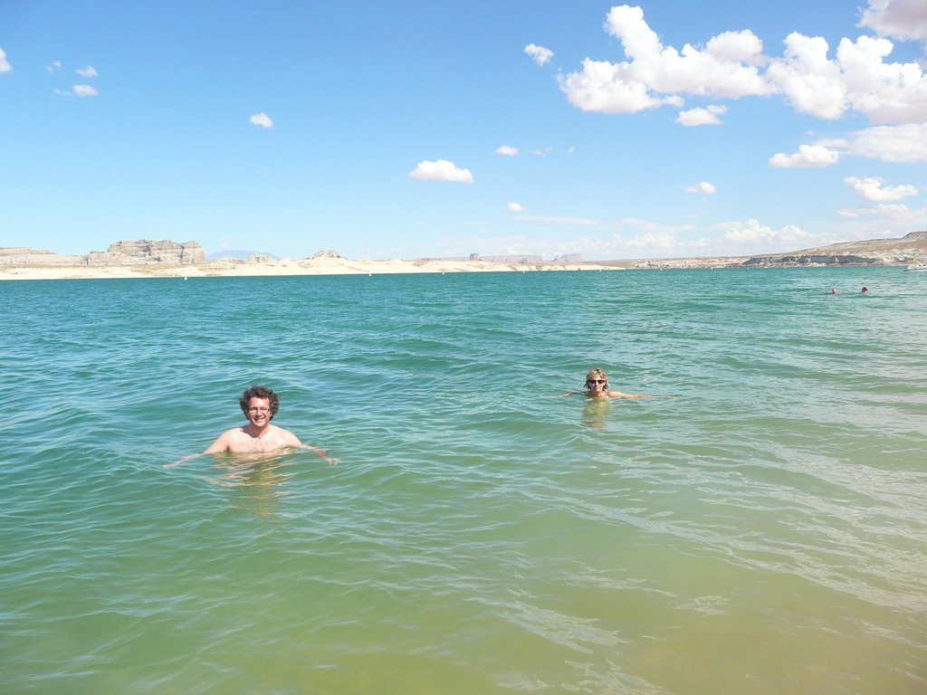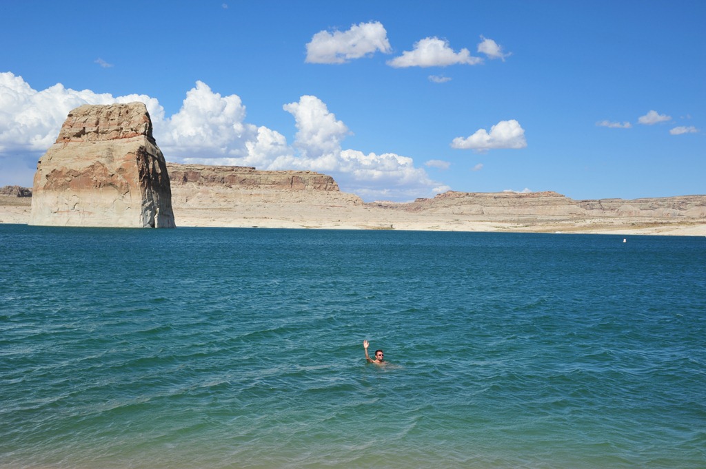 Nous n’avons pas prévu les maillots de bain ce matin nous décidons donc d’y revenir cet après midi pour une petite baignade. Cette plage se trouve à la limite de l’Arizona et l’Utah.