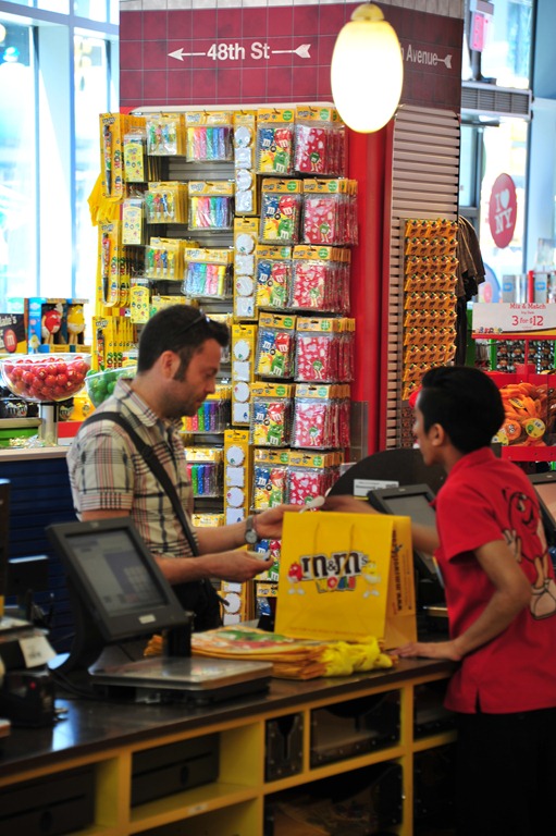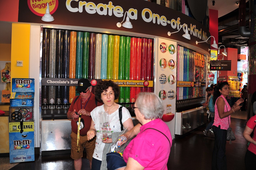 Passage dans la boutique M&M’s : Trois étages dédiés aux petites friandises au chocolat.