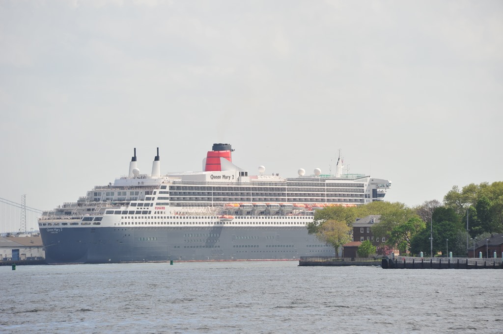 Direction Pier 13. Au loin le Queen Mary 2 qui est en visite à new york.