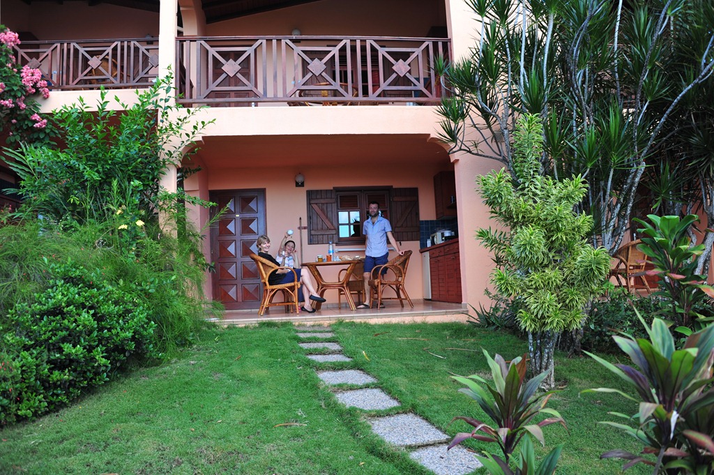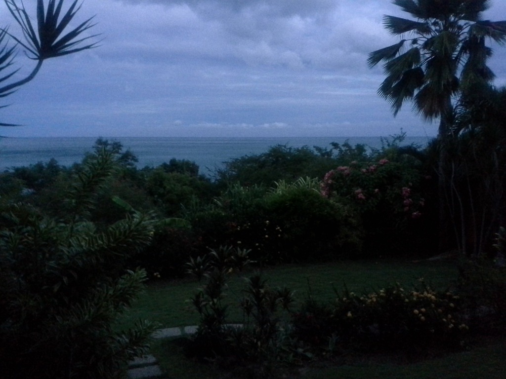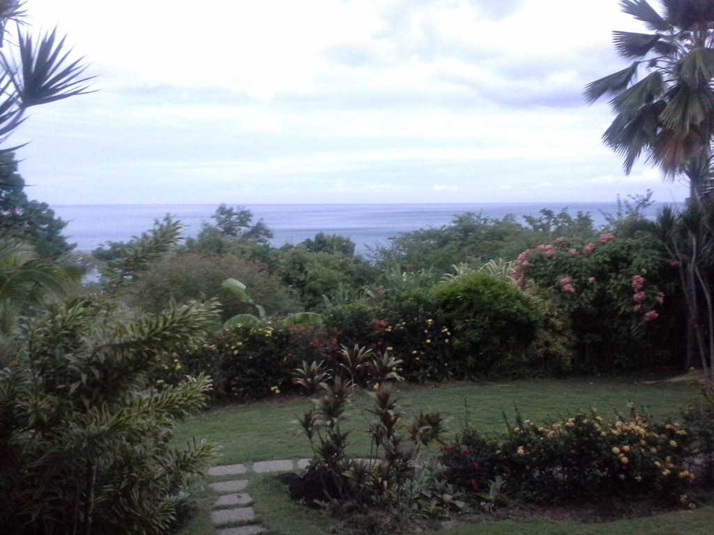 Il ne fait pas très beau mais il fait bon. L’appartement est fait de deux chambres, une salle de bain et d’une terrasse cuisine ouverte sur le jardin et vue mer.