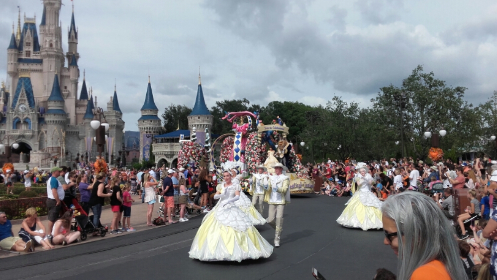 Un immense parking où du personnel fait stationner les voitures. C’est réglé comme du papier à musique. Un petit train nous emmène à une station de monorail qui lui va nous emmener aux portes du parc.