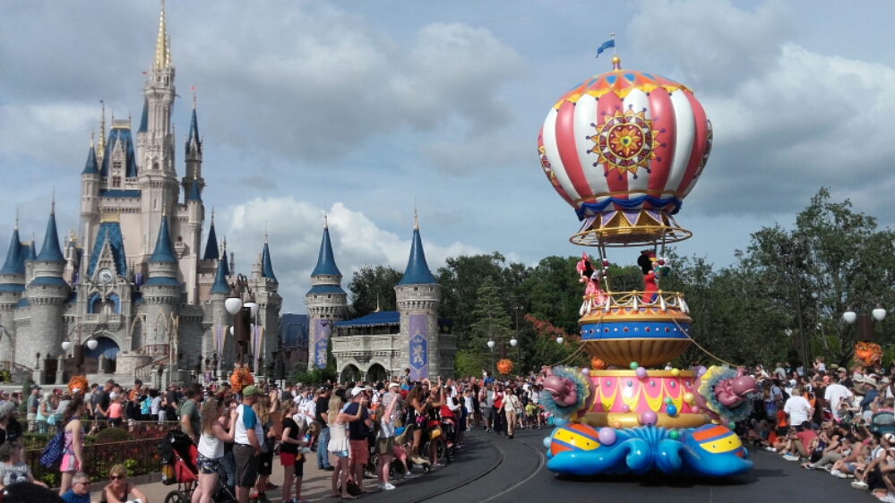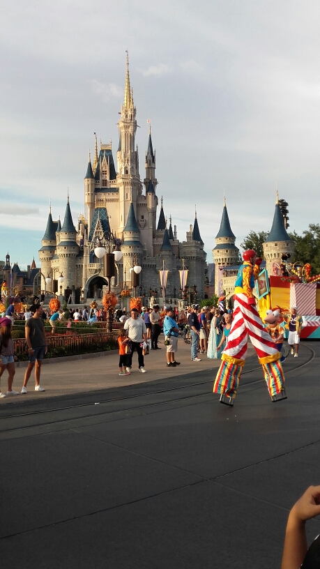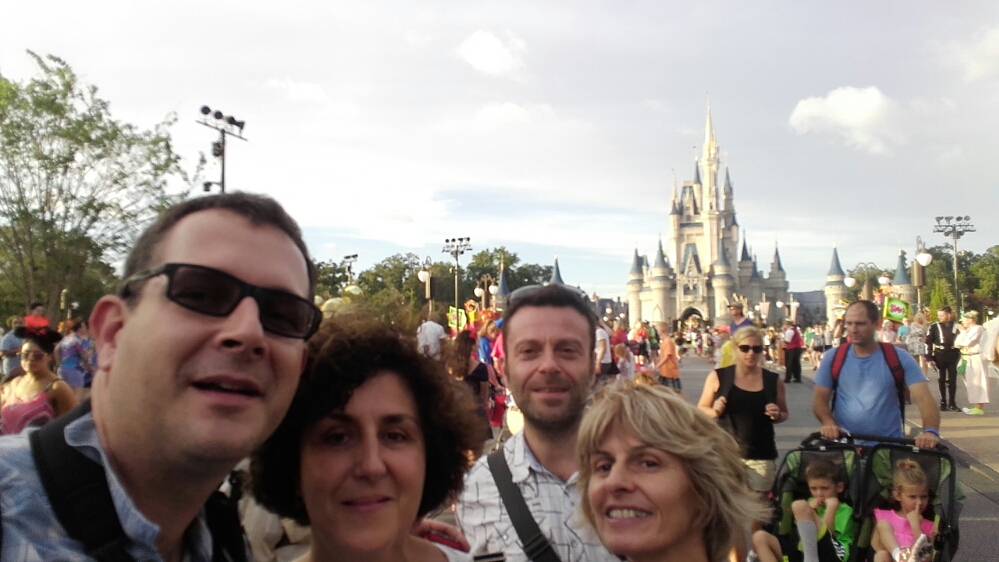8H15, nous prenons la voiture. Un voyant de sous gonflage s’allume. Il faut trouver une station pour regonfler. C’est chose faite. Maintenant nous suivons le gps. “Vous êtes arrivé” mais où ??? Il n’y a rien autour, c’est la magie Disney ??? Ah non simplement une mauvaise adresse de rentrée dans le gps. Demi tour et nouvelle adresse saisie. Voilà enfin quelques panneaux et sur l’autoroute un grand porche avec Disney World.