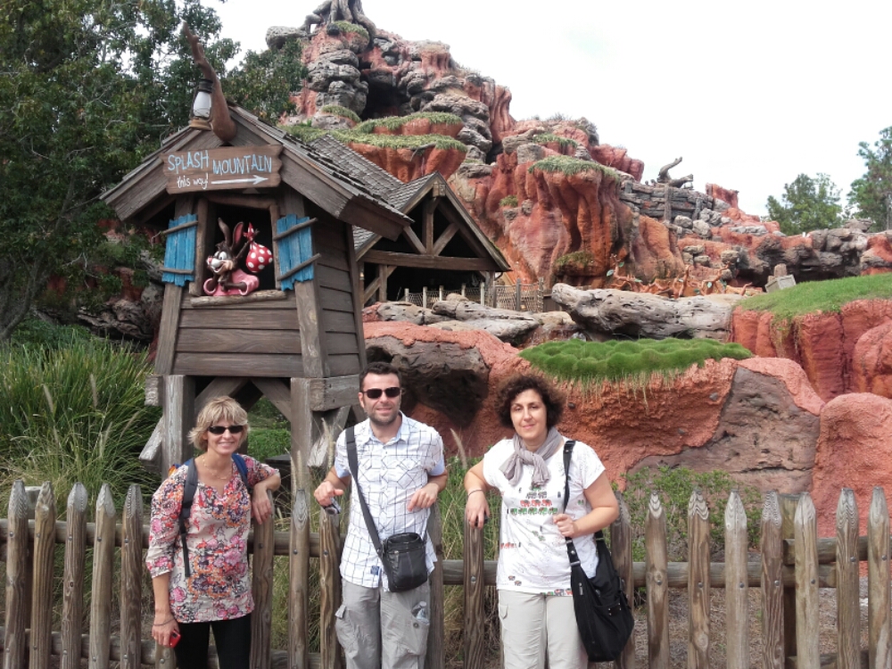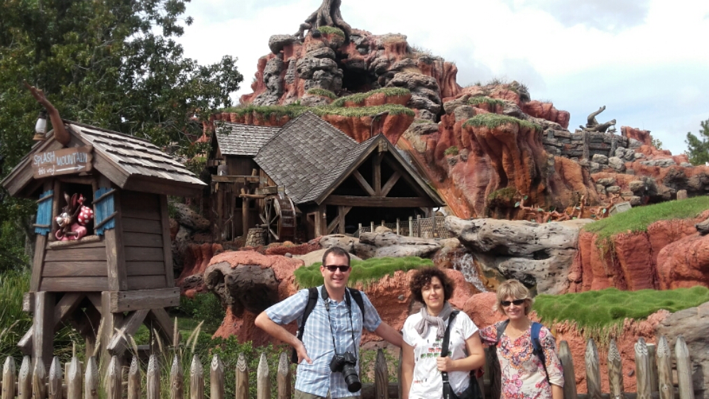 Première attraction splash mountain. Petites montagnes russes. On est installé dans des rondins sur l’eau. Nous en sortirons un peu humide.
