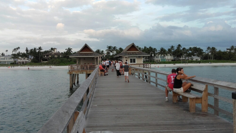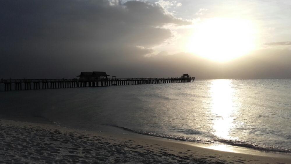 Une petite baignade à la piscine de l’hôtel et ensuite nous allons faire un tour sur le pier pour assister au couché de soleil qui sera un peu court car des nuages font leur apparition.