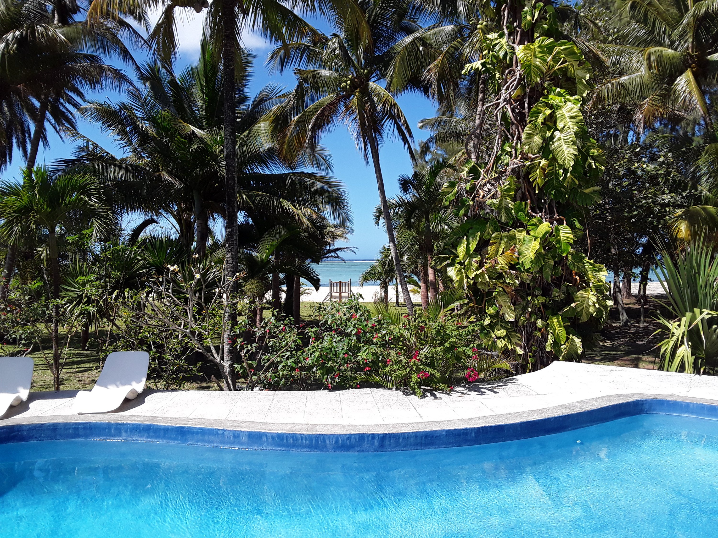 Nous profitons de la maison, la piscine et la plage.