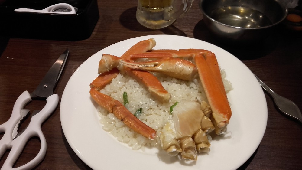 Menu de ce soir crabe. Gisèle est resté à l’hôtel pour ménager ces petits pieds pour demain.