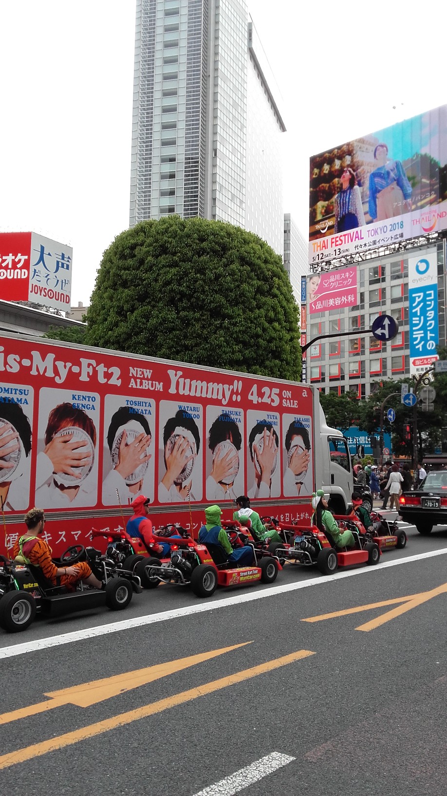 Nous prenons nous la direction de Shibuya. Nous assistons a une courses de Mario Kart (jeu video tres connu). Une autre façons de visiter la ville.