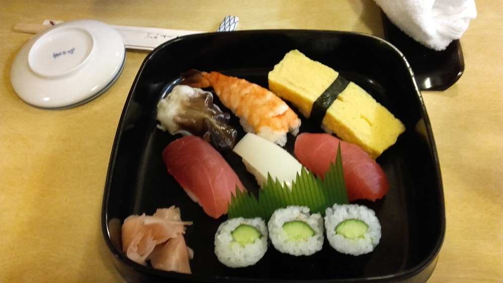 Pour finir se soir nous trouvons par hazard un super restaurant authentique. Au menu sushi. Préparation à la demande sous nos yeux par la propriétaire, service fait par une gentil japonnaise et la caisse est tenue par la grand mère. Pas plus de 10 places dans ce restaurant.