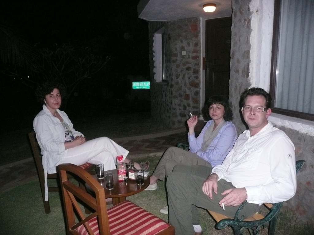 C’est l’heure de l’apéro et JC a eu la bonne idée de prendre quelques petites chopines d’alcool. Au bar-valise nous avons : Porto, Madere, Rhum, cacahuètes, et Christine à même quelques tranches de saucisson.